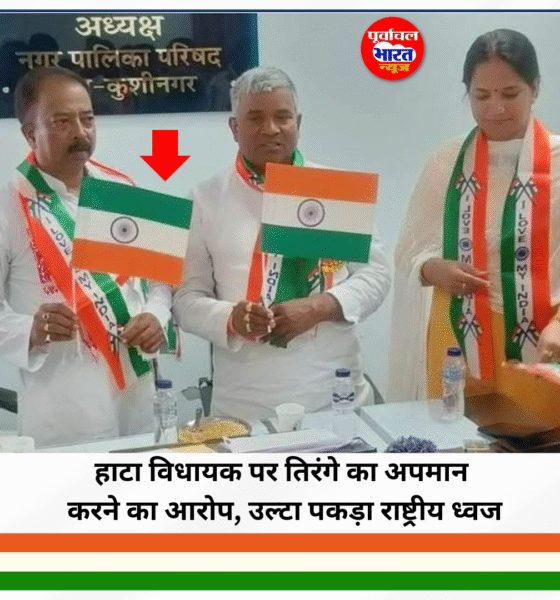 हाटा, कुशीनगर,उत्तर प्रदेश 15 अगस्त 2025 स्वतंत्रता दिवस समारोह के दौरान हाटा विधानसभा के विधायक पर राष्ट्रीय ध्वज का अपमान...