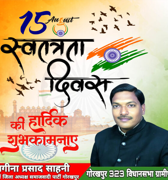 गोरखपुर (ब्यूरो रिपोर्ट-विज्ञापन)79वें स्वतंत्रता दिवस के अवसर पर समाजवादी पार्टी के पूर्व जिलाध्यक्ष नगीना प्रसाद साहनी ने समस्त देशवासियों और...